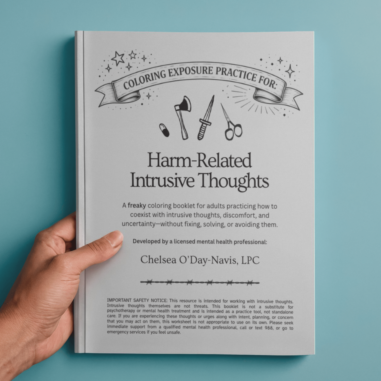 A guided, exposure-based coloring booklet for adults practicing how to coexist with intrusive thoughts, discomfort, and uncertainty—without fixing, solving, or avoiding them. This tool is intended as a supplemental practice and is not a substitute for psychotherapy. Not appropriate for use when experiencing intent or planning to act on thoughts.